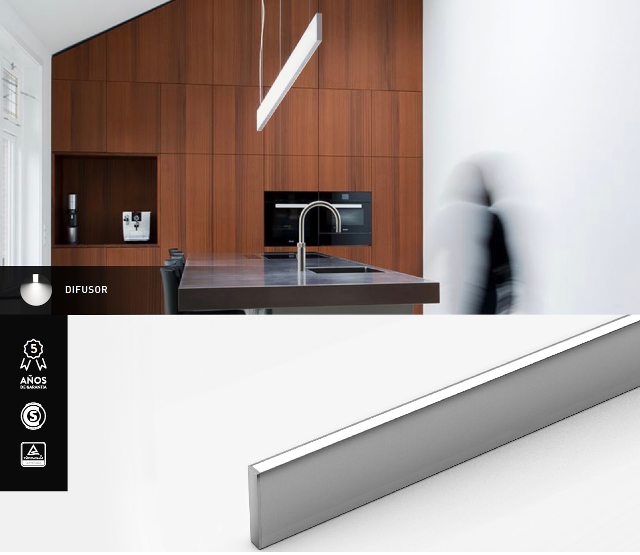 💡 Perfil colgante ultrafino (25 mm) que flota sobre tu ambiente y traza una línea de Luz cálida de CRI 90 (alto índice de reproduccion de color).